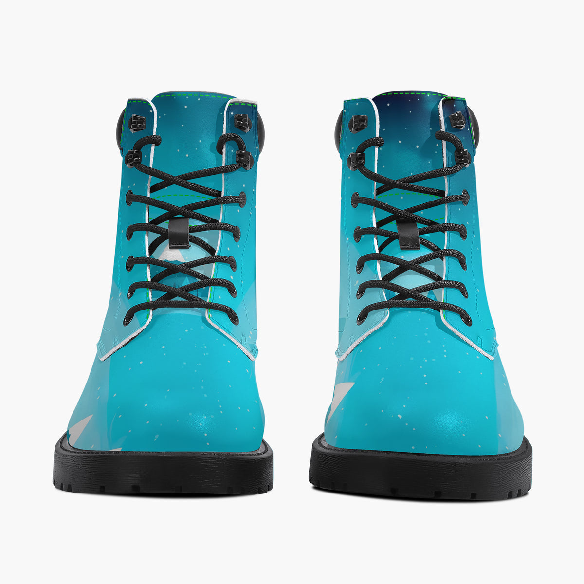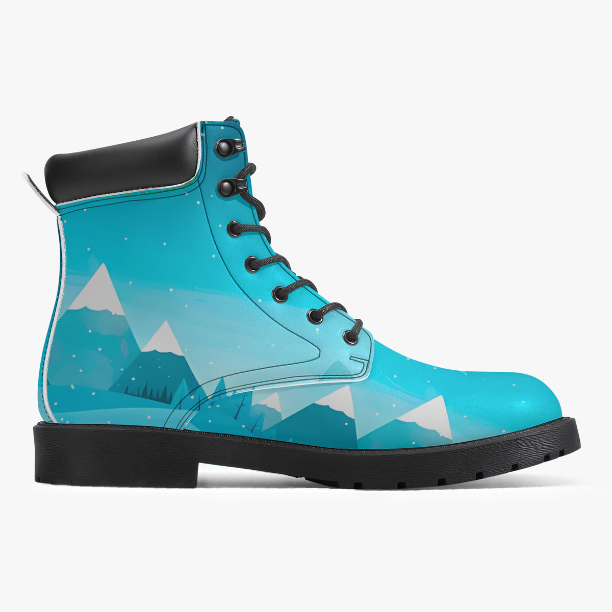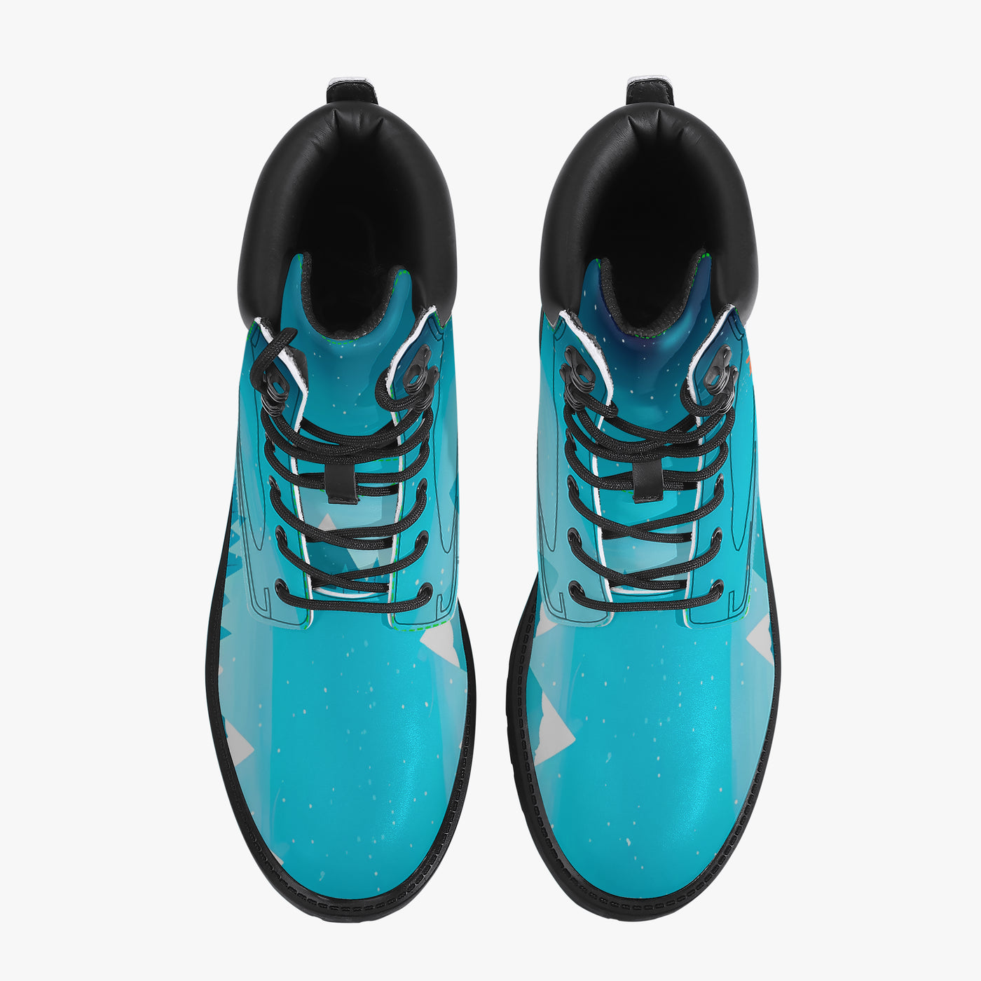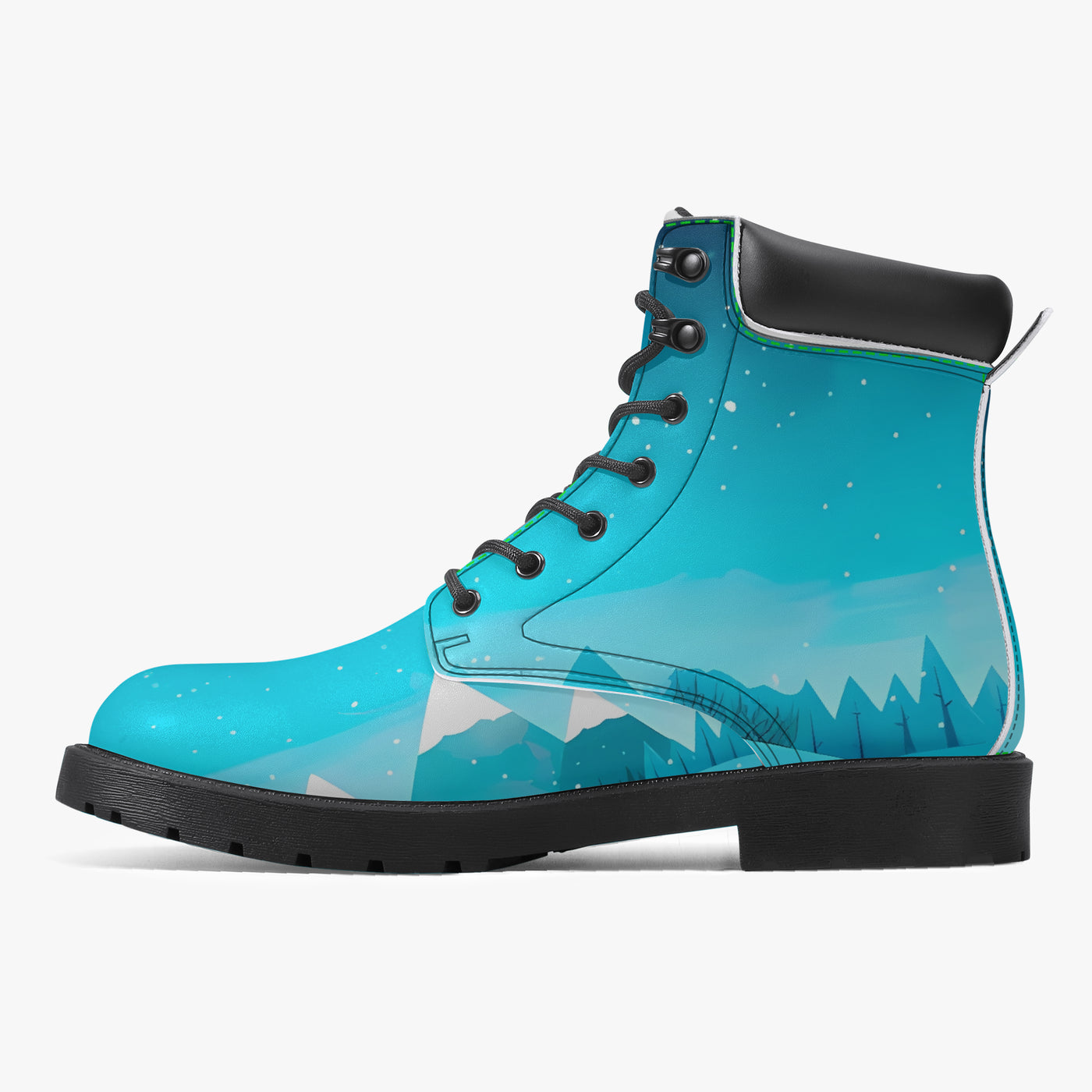 Estas botas de cuero destacan por su diseño ilustrado lleno de ternura y fantasía, pensado para quienes buscan un calzado diferente, original y con personalidad. El exterior presenta una ilustración delicada de un zorro en un paisaje invernal, con tonos azules suaves y detalles sutiles que evocan calma, aventura y mundo infantil.