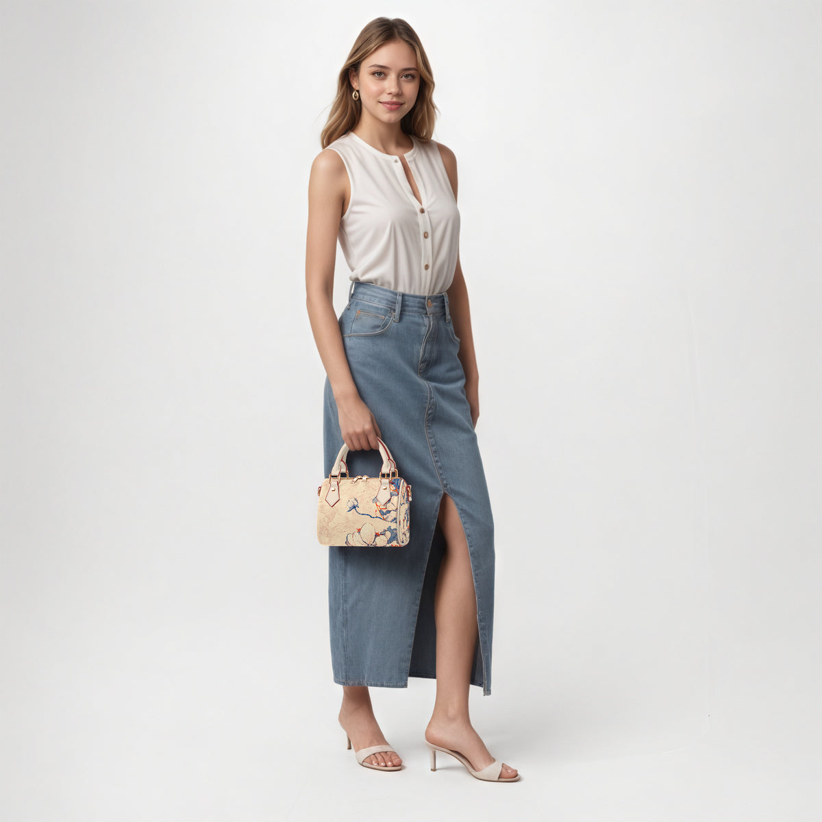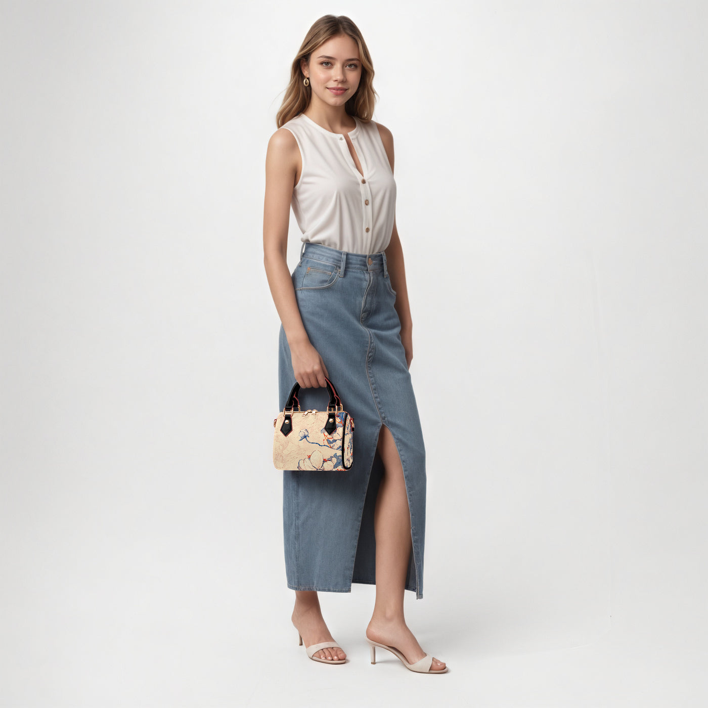 Descubre el Bolso de mano Chic Estampado Floral, un accesorio que fusiona versatilidad y arte en un diseño único. Inspirado en un estilo que se mueve entre lo figurativo y lo surrealista, este bolso narra pequeñas historias a través de técnicas mixtas, líneas fluidas y detalles finos que evocan un universo creativo lleno de personalidad.
