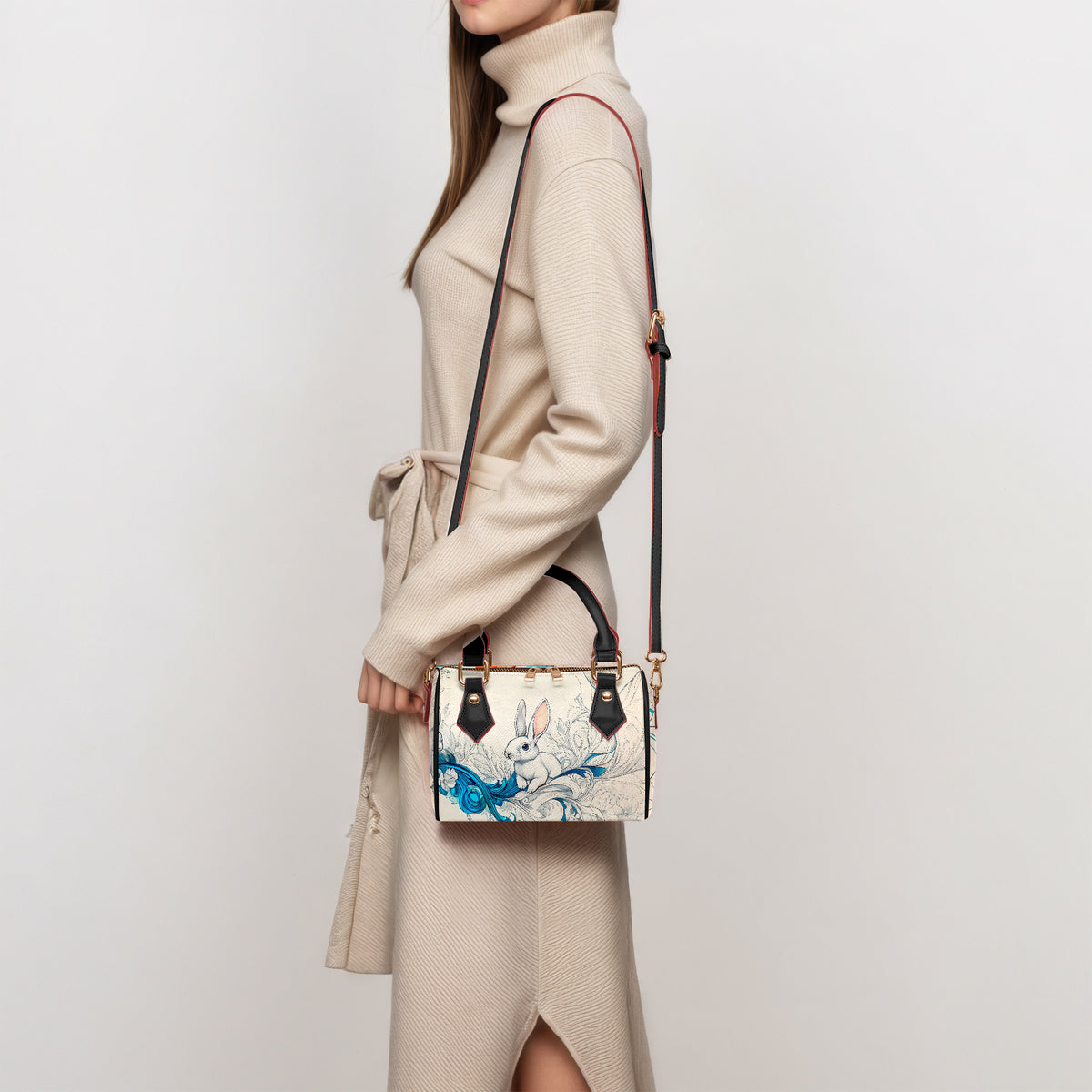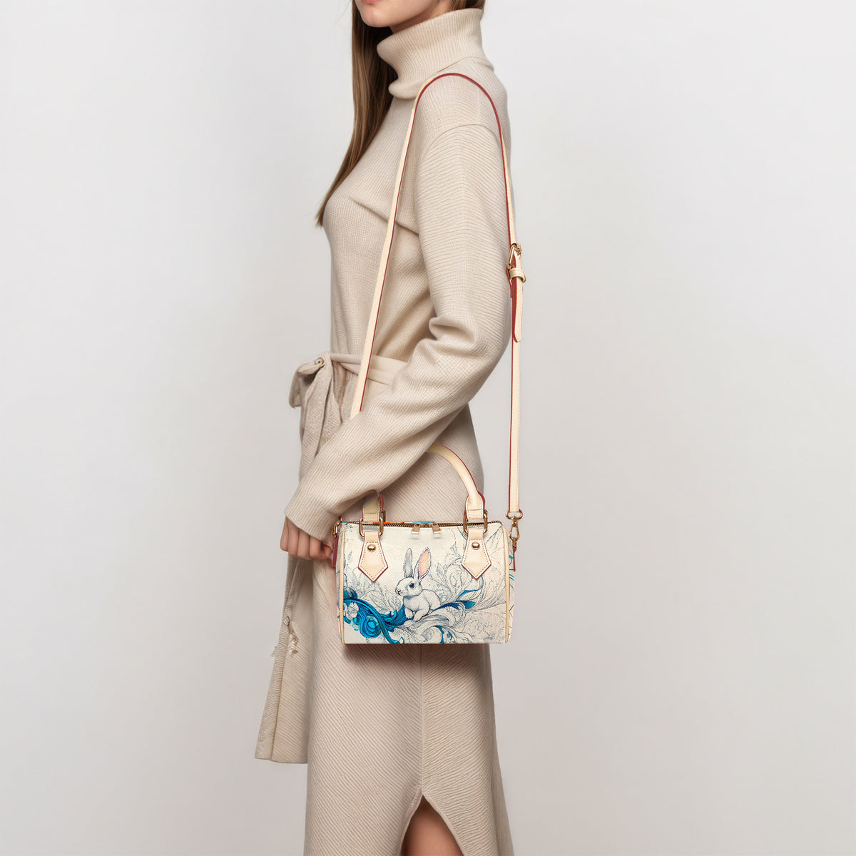 Descubre el Bolso de mano Chic Con conejitos ilustración de Mariposa y Estampado Floral, un accesorio que fusiona versatilidad y arte en un diseño único. Inspirado en un estilo que se mueve entre lo figurativo y lo surrealista, este bolso narra pequeñas historias a través de técnicas mixtas, líneas fluidas y detalles finos que evocan un universo creativo lleno de personalidad.
